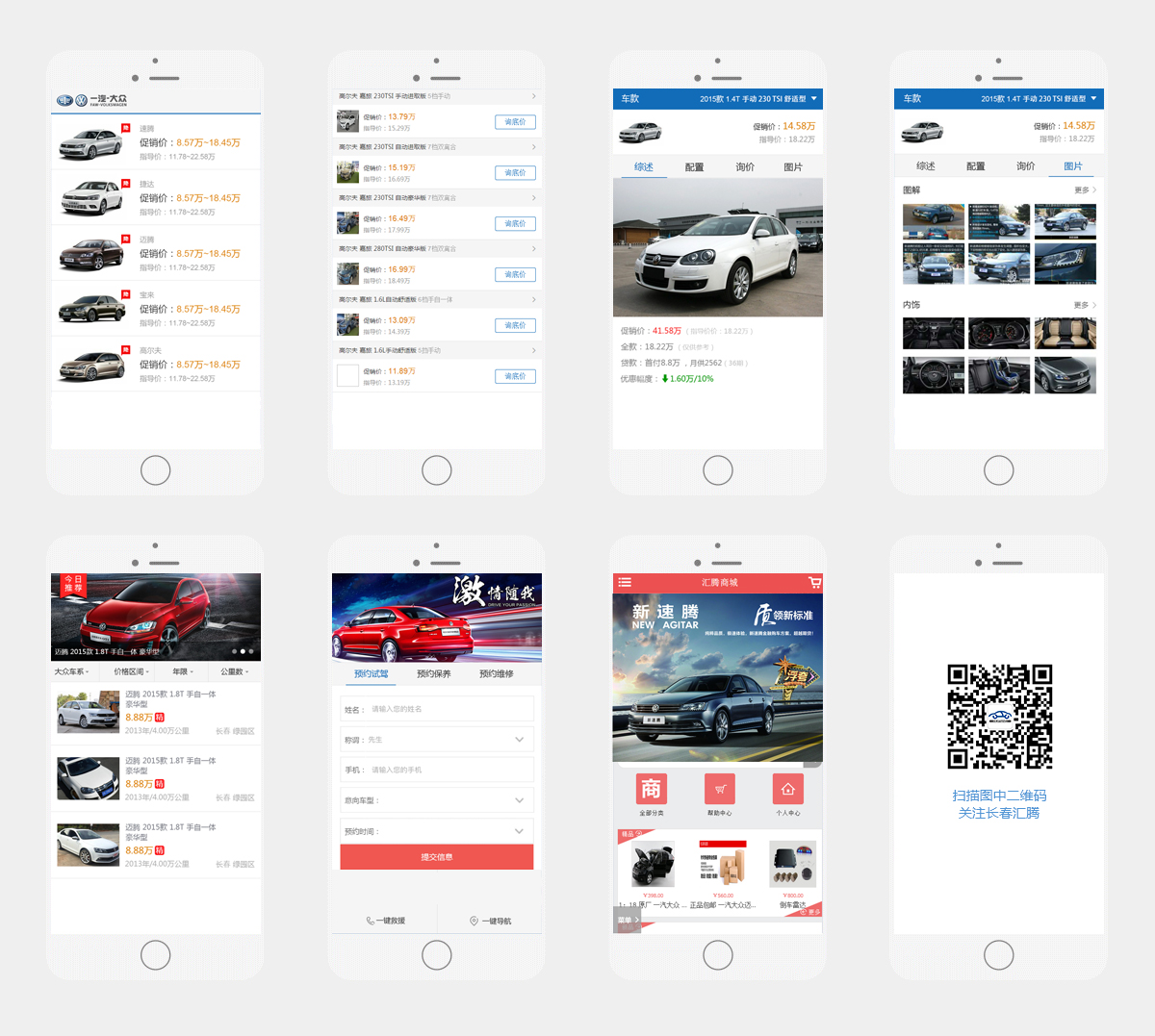 長(zhǎng)春匯騰汽車銷售服務(wù)有限公司是一汽大眾旗下一級(jí)汽車經(jīng)銷商之一,多年以來(lái)其銷售業(yè)績(jī)?cè)诮?jīng)銷商中一直處于領(lǐng)跑地位。為了更好地適應(yīng)和服務(wù)當(dāng)代客戶,長(zhǎng)春匯騰于2016年9月委托匯友科技公司定制一款集新車、二手車、商城于一身的微信公眾平臺(tái)。該平臺(tái)功能在一汽大眾眾多經(jīng)銷商中處于領(lǐng)先位置。